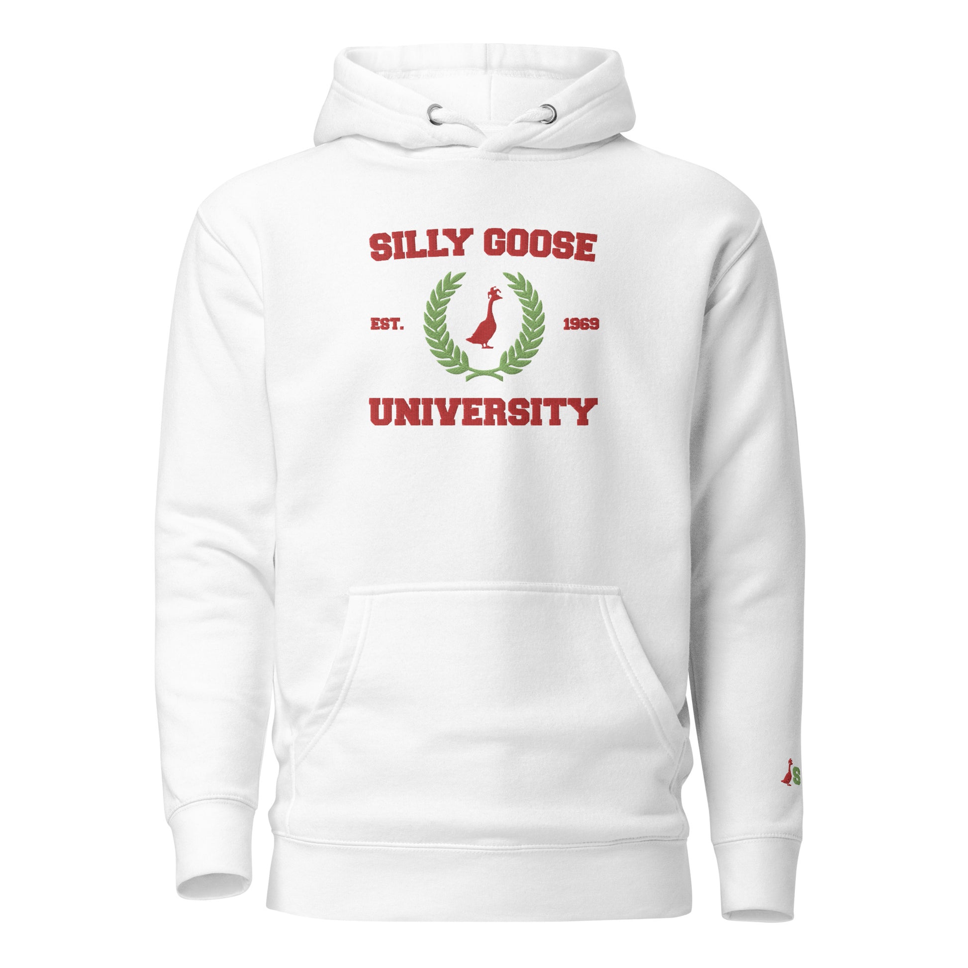 SGU Collegiate Seal Winter Wonderland Edition | Premium Unisex Hoodie - White/Green/ Red - Embroidered